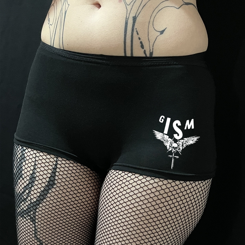 Schwarzer Schlüpfer von Promodoro mit weißem Siebdruck-Transfer.
