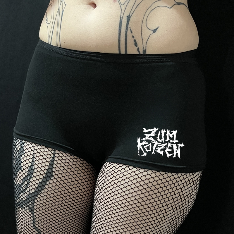 Schwarzer Schlüpfer von Promodoro mit weißem Siebdruck Transferdruck.